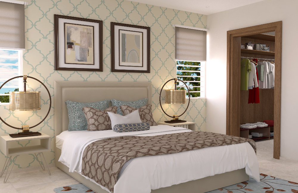 Como se puede observar en el plano, tiene un amplio y confortable salón familiar, integrado por la sala, el comedor y la cocina. Como resultado, se obtiene un moderno concepto de espacio abierto. Todos los dormitorios tienen visibilidad hacia el exterior y ofrecen tranquilidad a la hora del merecido descanso. El dormitorio principal tiene un cómodo y espacioso walk-in-closet doble para el deleite de sus usuarios.