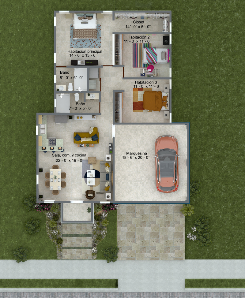 Espléndida Casa Prediseñada Terrera de 1,700 ft² y 3 dormitorios. Su diseño optimizado cuenta con todas las comodidades de una residencia principal.
