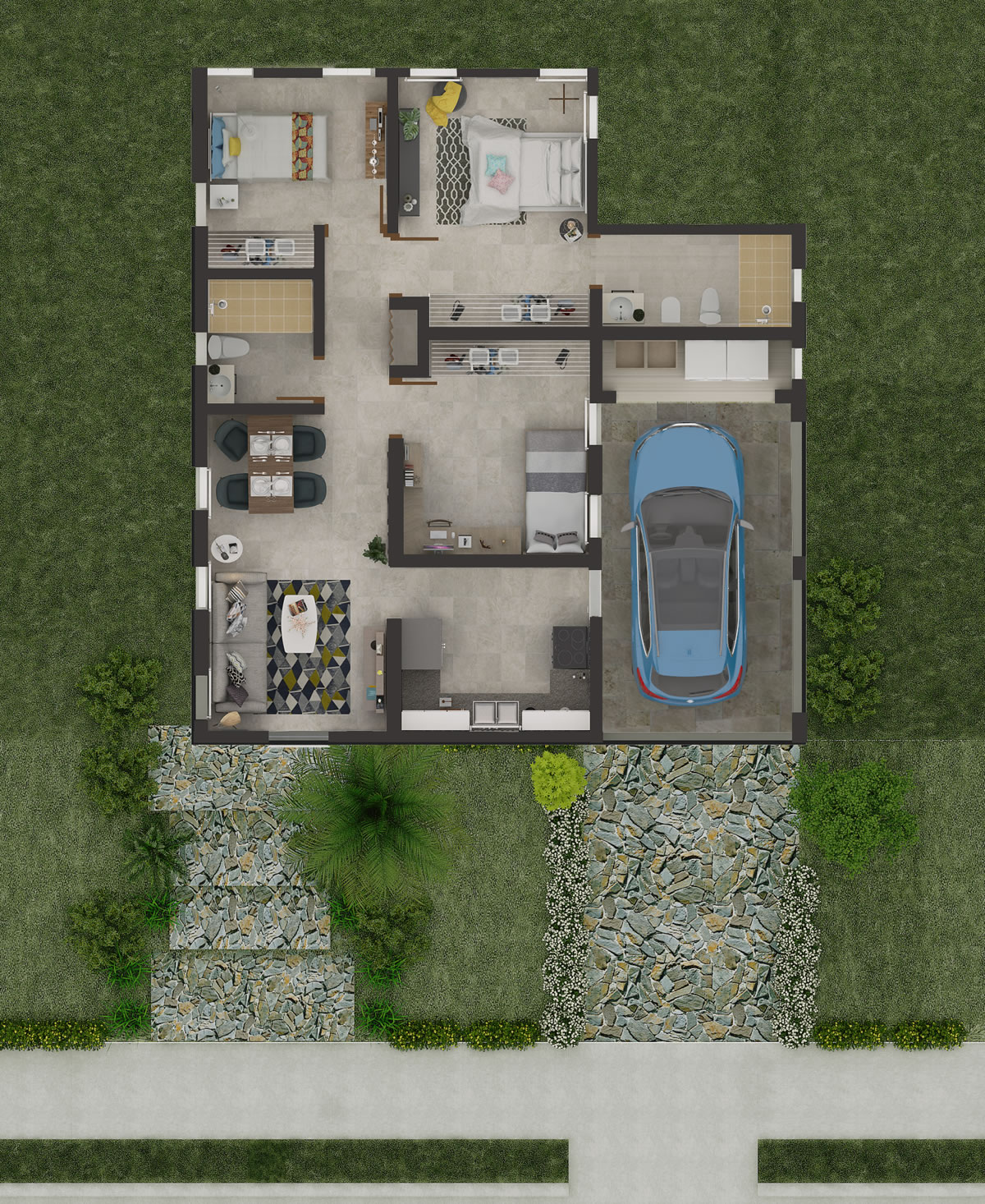 Acogedora Casa Prediseñada Terrera de 3 dormitorios con diseño compacto pero funcional, conteniendo todo lo que un hogar necesita.
