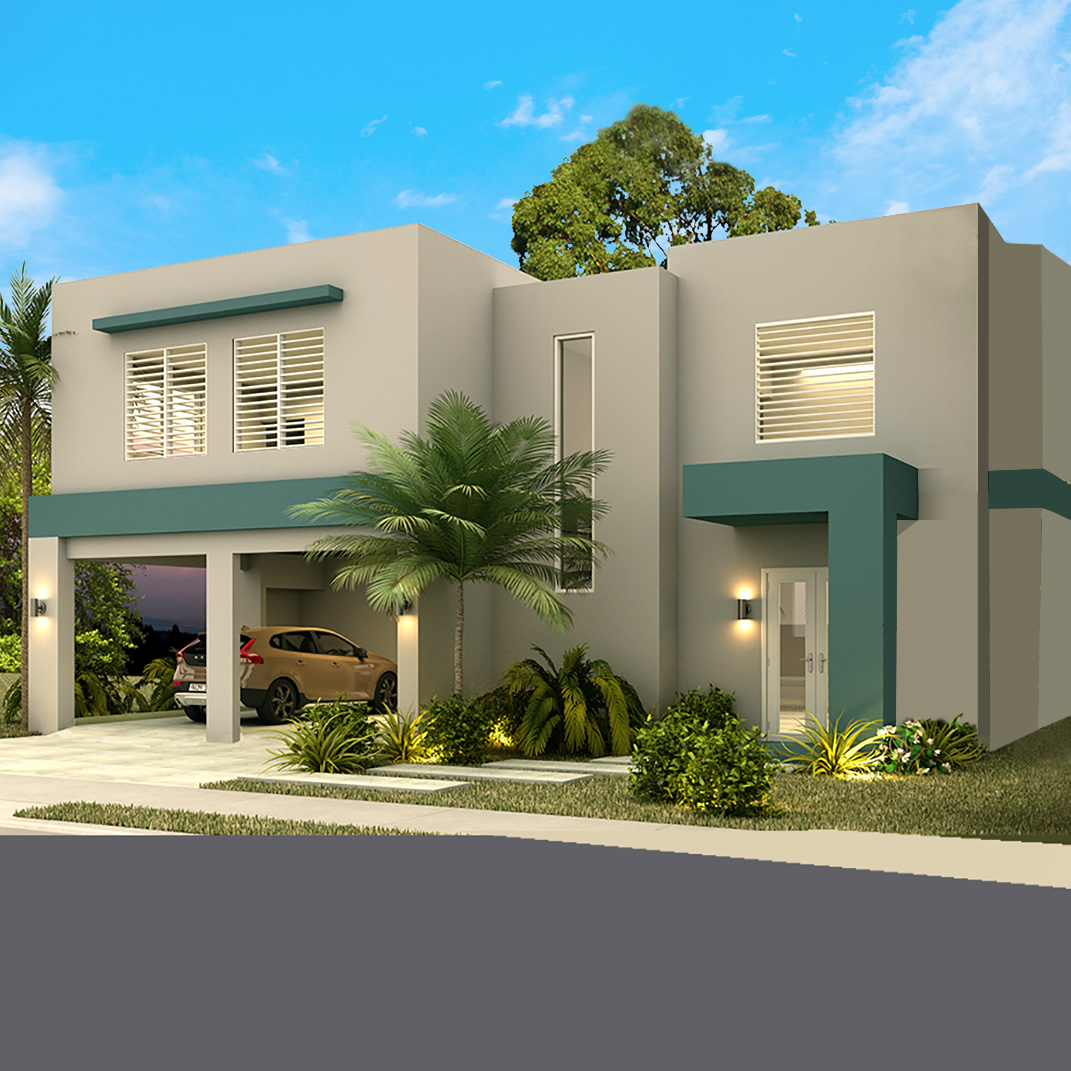El elegante modelo Suecia es una Casa Prediseñada de dos plantas de 2,806 pies cuadrados con un diseño moderno, constituyéndose en el modelo ideal para vivir cómodamente en familia.